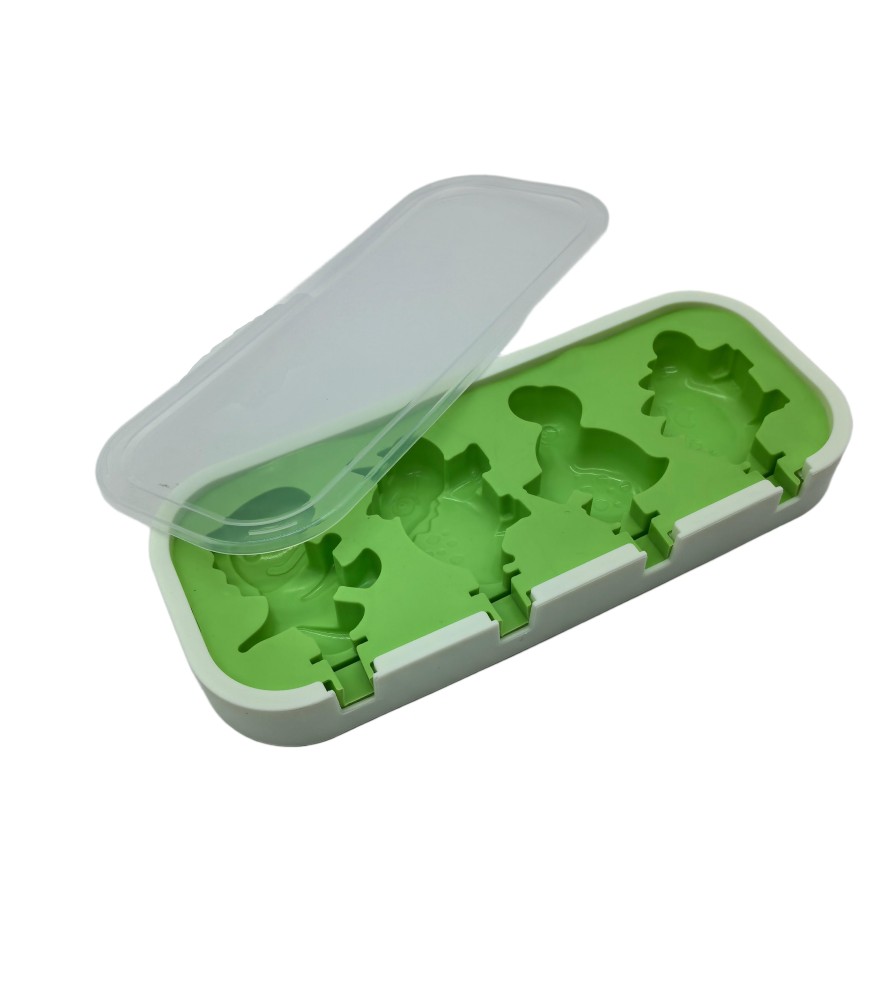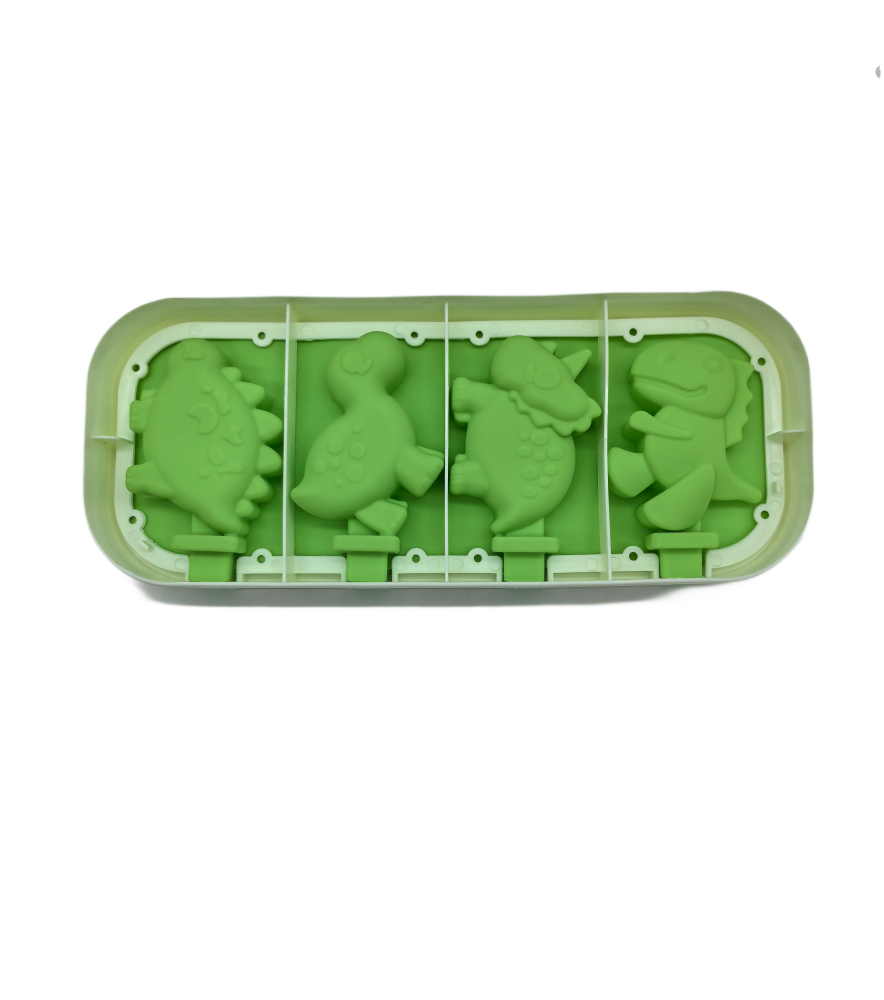 Dinosaur Shaped Popsicle Silicone Molds With Lid And Stick,4 Cavity Ice Lolly Mold