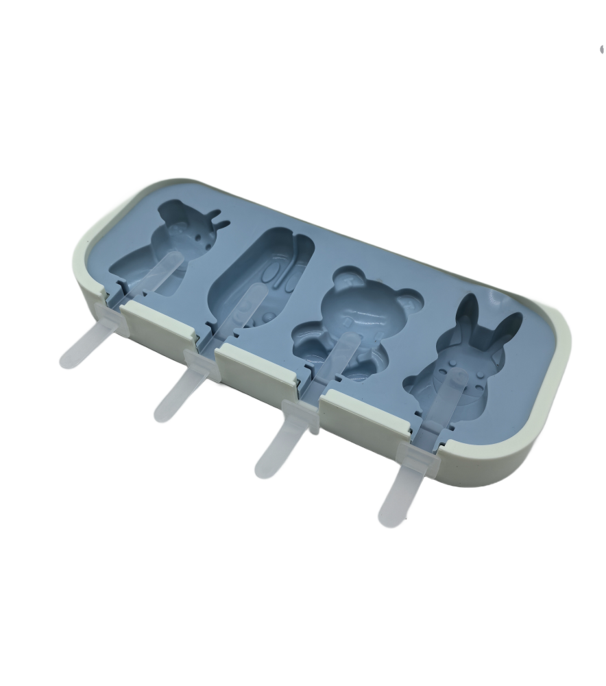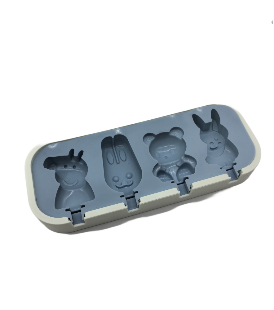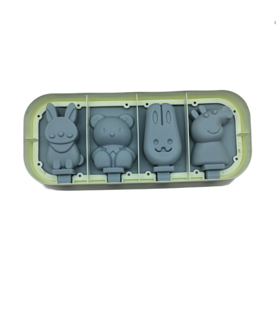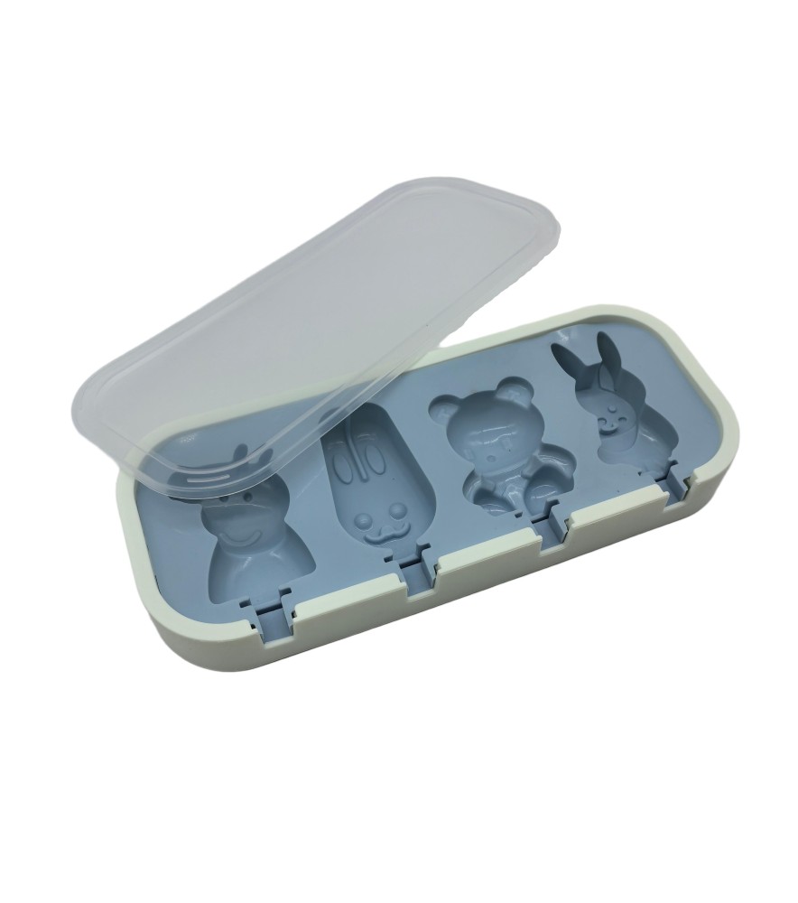 Cartoon Animal Shaped Popsicle Silicone Molds With Lid And Stick,4 Cavity Ice Lolly Mold