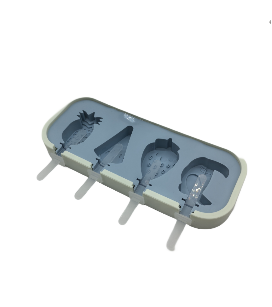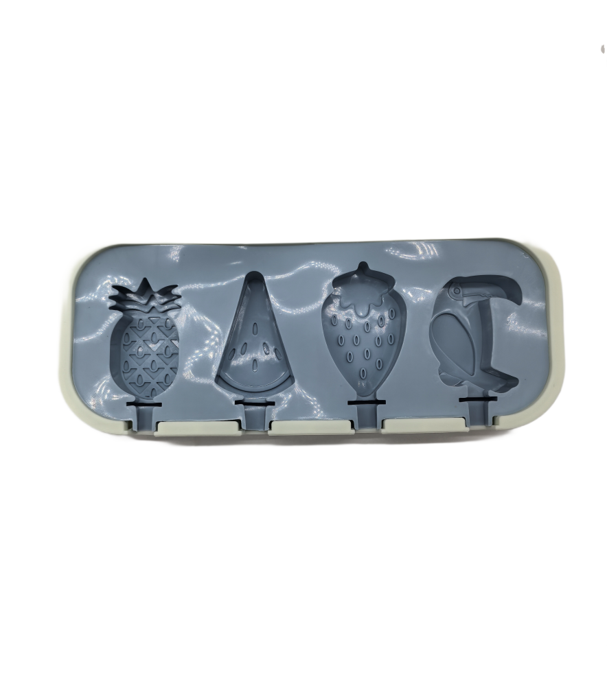 Fruit And Parrot Shaped Popsicle Silicone Molds With Lid And Stick,4 Cavity Ice Lolly Mold
